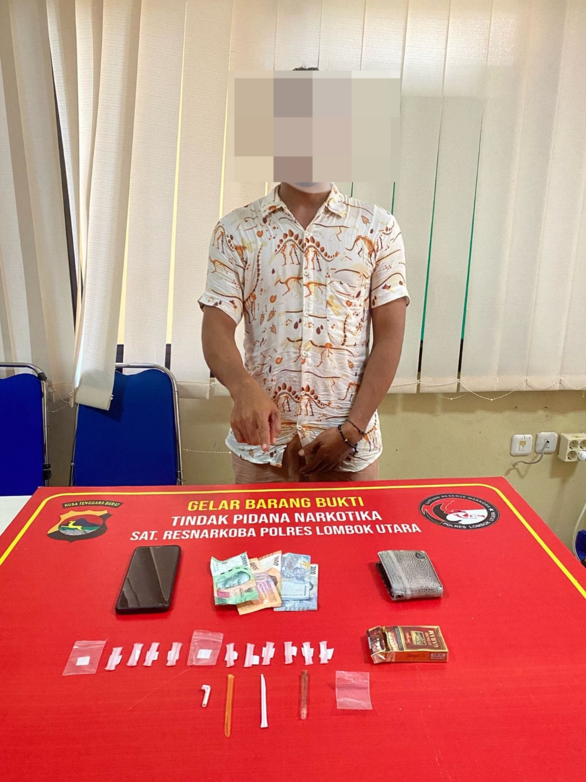 “Setelah mendapatkan Informasi tersebut selanjutnya Anggota Opsnal Satuan Resnarkoba melakukan Penyelidikan dan Pengintaian disekitar wilayah Pemenang, sampai akhirnya pada waktu dan tempat tersebut diatas, petugas mengamankan terduga pelaku SL yang saat itu sedang berada Di Belakang rumahnya” ujar Kasat Narkoba