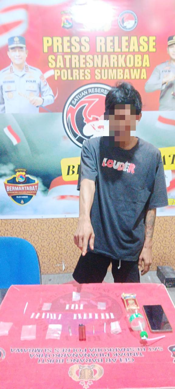 Sumbawa Besar – NTB, Tim Opsnal Satuan Reserse Polres Sumbawa melakukan penangkapan dan penggeledahan terhadap 1 (satu) orang laki-laki berinisial Fl Alias B (32) yang diduga sebagai pengedar narkoba jenis sabu, Kamis (24/04/25) pukul 20.30 Wita.