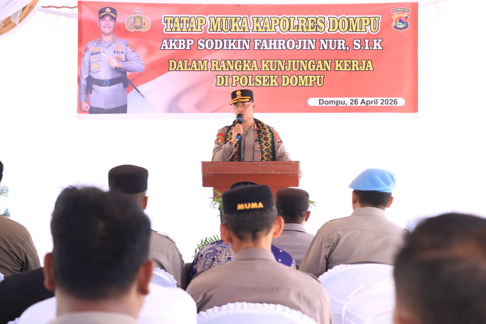 “Disiplin, kolaborasi, dan penggunaan media sosial yang bijak menjadi kunci utama pelayanan terbaik kepada masyarakat,” tegas AKBP Sodikin di hadapan seluruh jajaran Polsek Dompu.