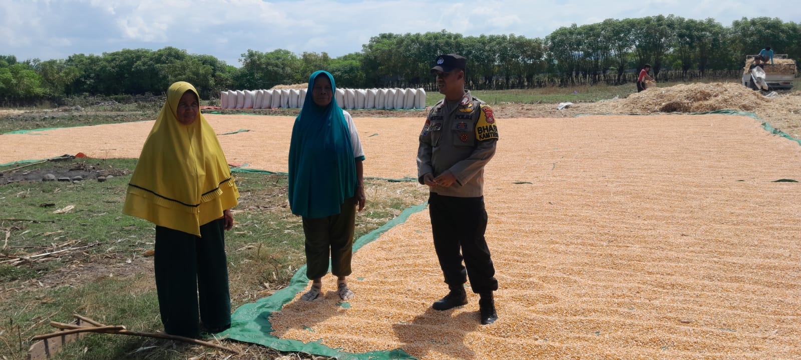 Kegiatan tersebut merupakan bagian dari upaya pembinaan dan pengawasan terhadap aktivitas pertanian masyarakat, khususnya dalam pengelolaan hasil panen jagung. Jagung hasil panen dari lahan seluas 1,5 hektare tersebut saat ini masih dalam proses penjemuran dan belum dikarungin. Menurut informasi, jagung tersebut akan langsung dijual ke gudang jagung dengan harga jual Rp 4.300 per kilogram dalam kondisi kering.