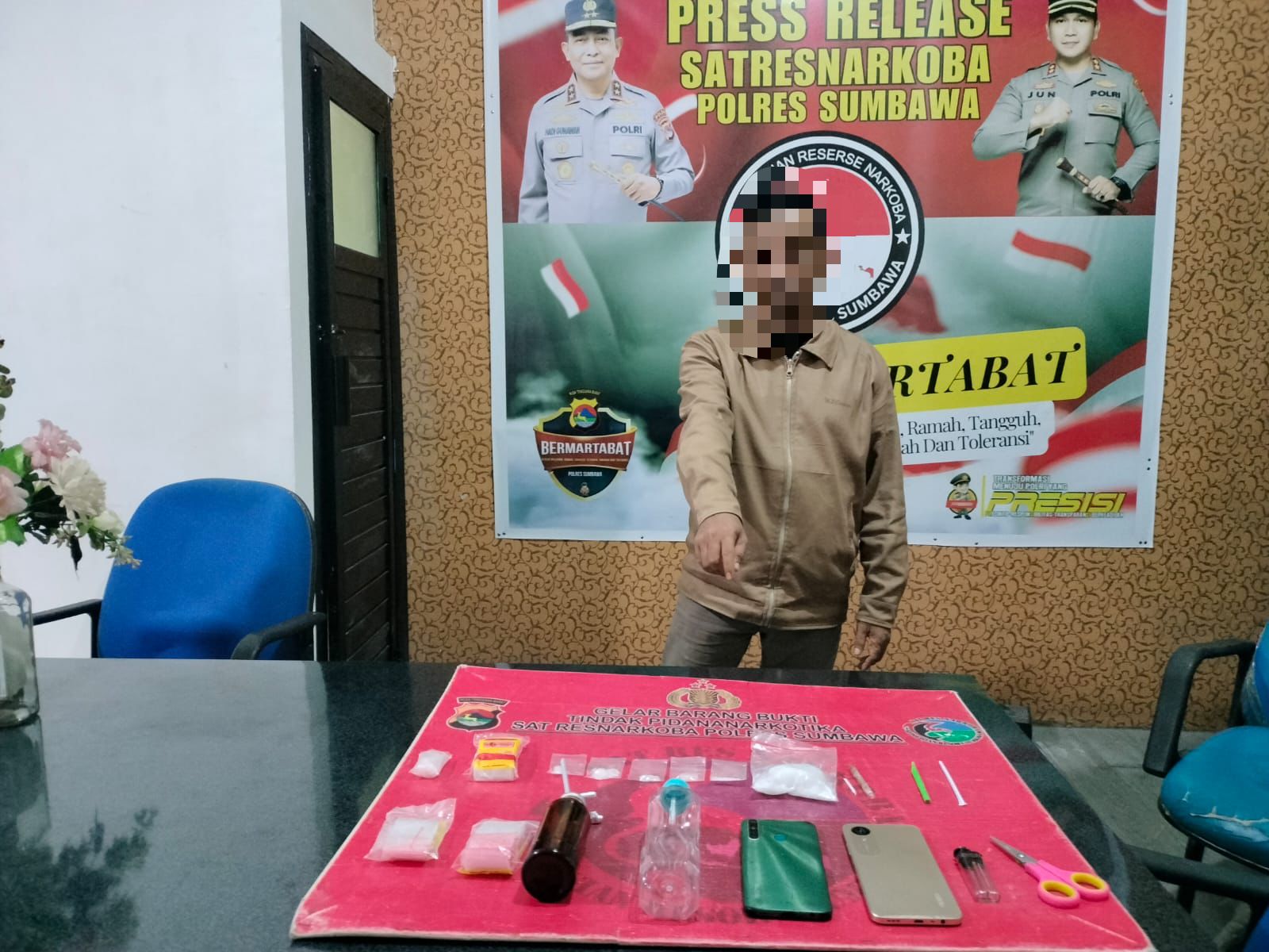Kapolres Sumbawa AKBP Bagus Nyoman Gede Junaedi, S.H., S.I.K., M.A.P., melalui Kasat Narkoba AKP Tamrin, S. Sos., mengungkapkan bahwa penangkapan ini berawal dari informasi warga terkait adanya dugaan terhadap seorang pria di Desa Juranalas yang kerap edarkan narkotika.