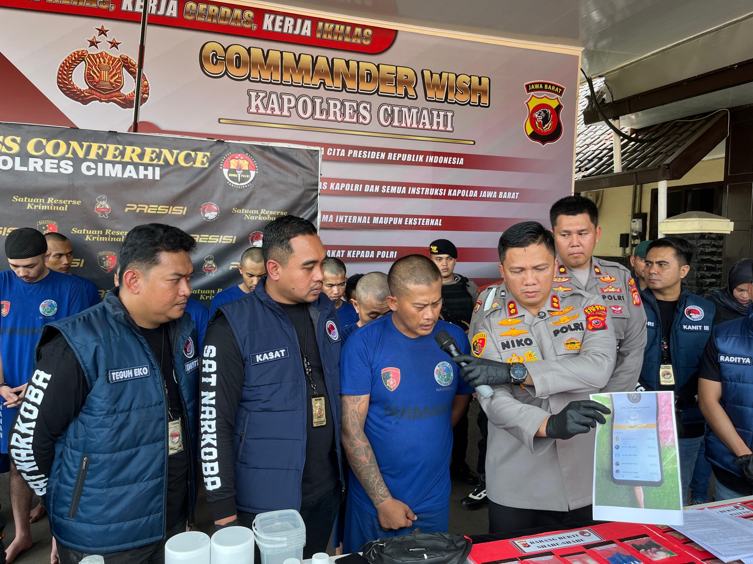 Satresnarkoba Polres Cimahi berhasil mengungkap kasus tindak pidana narkotika, Jumat (30/5/2025). Polisi berhasil manangkap satu pelaku yang merupakan salahsatu anggota ormas Grib Jaya PAC Parongpong, Bandung Barat.
