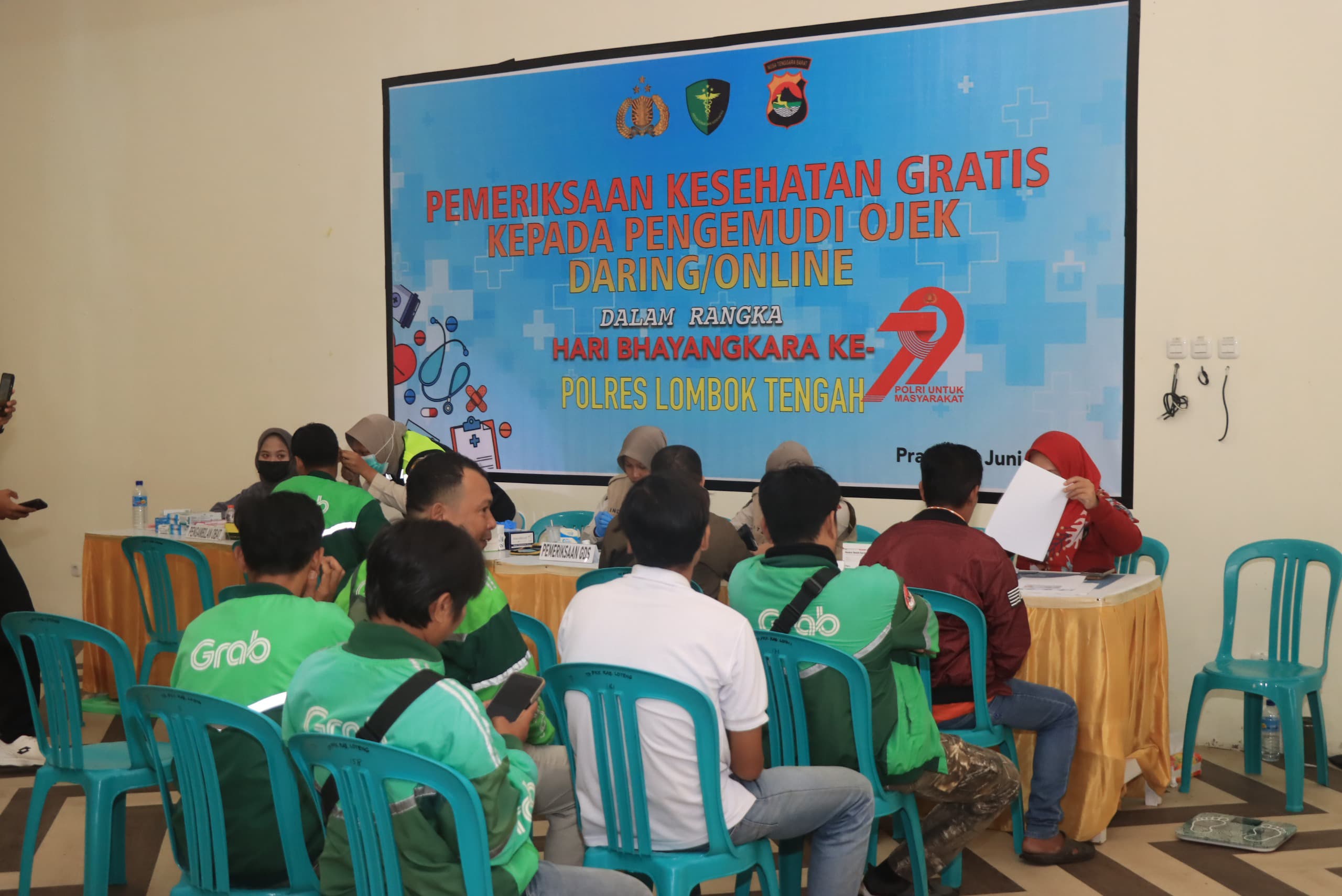 Lombok Tengah, (NTB) – Dalam rangka memperingati Hari Bhayangkara ke-79, Kepolisian Resor Lombok Tengah hari ini menyelenggarakan kegiatan pemeriksaan kesehatan gratis khusus bagi para pengemudi ojek daring dan online.