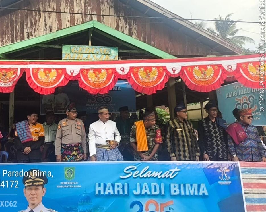Kapolsek Parado Polres Bima Polda NTB, Ipda Yakub memimpin langsung pengawalan dan pengamanan kegiatan Pawai Budaya Peringatan HUT Ke-385 Kabupaten Bima.