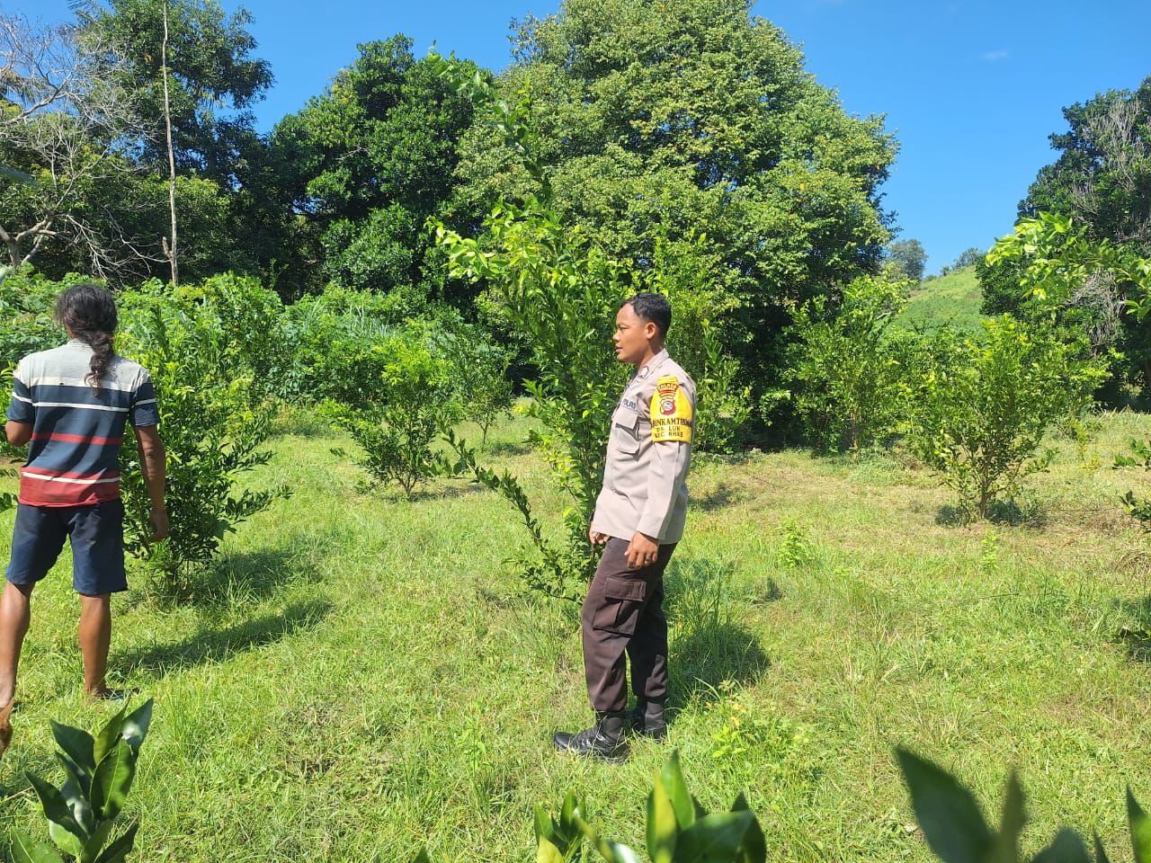 Sumbawa Besar–NTB, Dalam rangka mendukung program ketahanan pangan nasional, Bhabinkamtibmas Desa Luk, Brigadir I Komang Widnyana melaksanakan kegiatan sambang dan pengecekan lahan di Desa Luk, Kecamatan Rhee, Kabupaten Sumbawa, pada hari Senin, (7/7/2025) pukul 11.30 WITA.