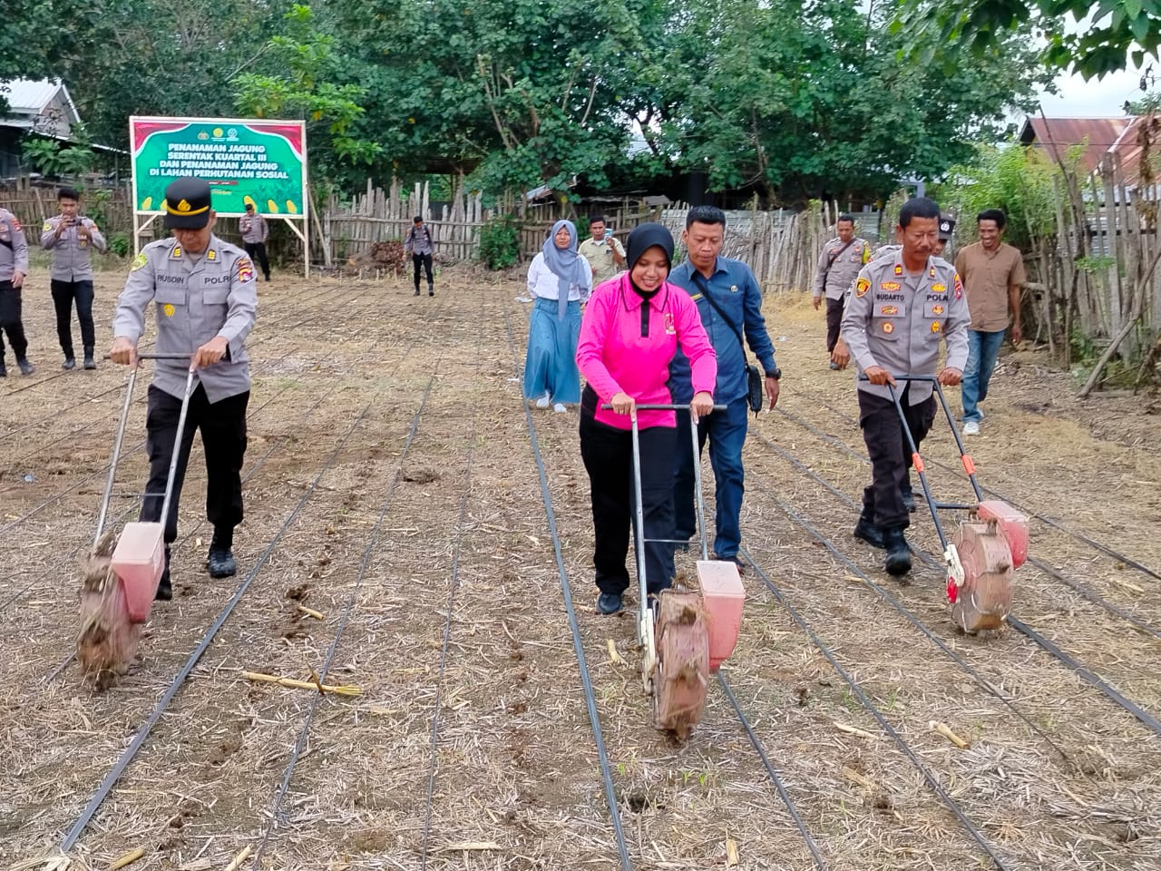Kapolres Bima Polda NTB AKBP Eko Sutomo S.I.K.,M.I.K., menghadiri Penanaman Jagung serentak Kuartal III dan Penanaman Jagung di lahan Perhutanan Sosial.