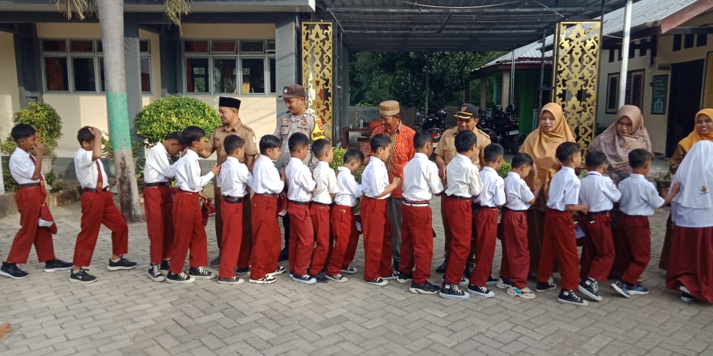 Usai upacara, seluruh murid secara bergiliran berjabat tangan dengan Kepala Sekolah, Bhabinkamtibmas, dan para guru sebagai bentuk penghormatan dan semangat kebersamaan. Dalam kesempatan tersebut, Brigadir Umar Dani menyampaikan pesan kepada para siswa agar senantiasa patuh dan hormat kepada guru, menjaga disiplin, serta tetap semangat dalam menuntut ilmu.