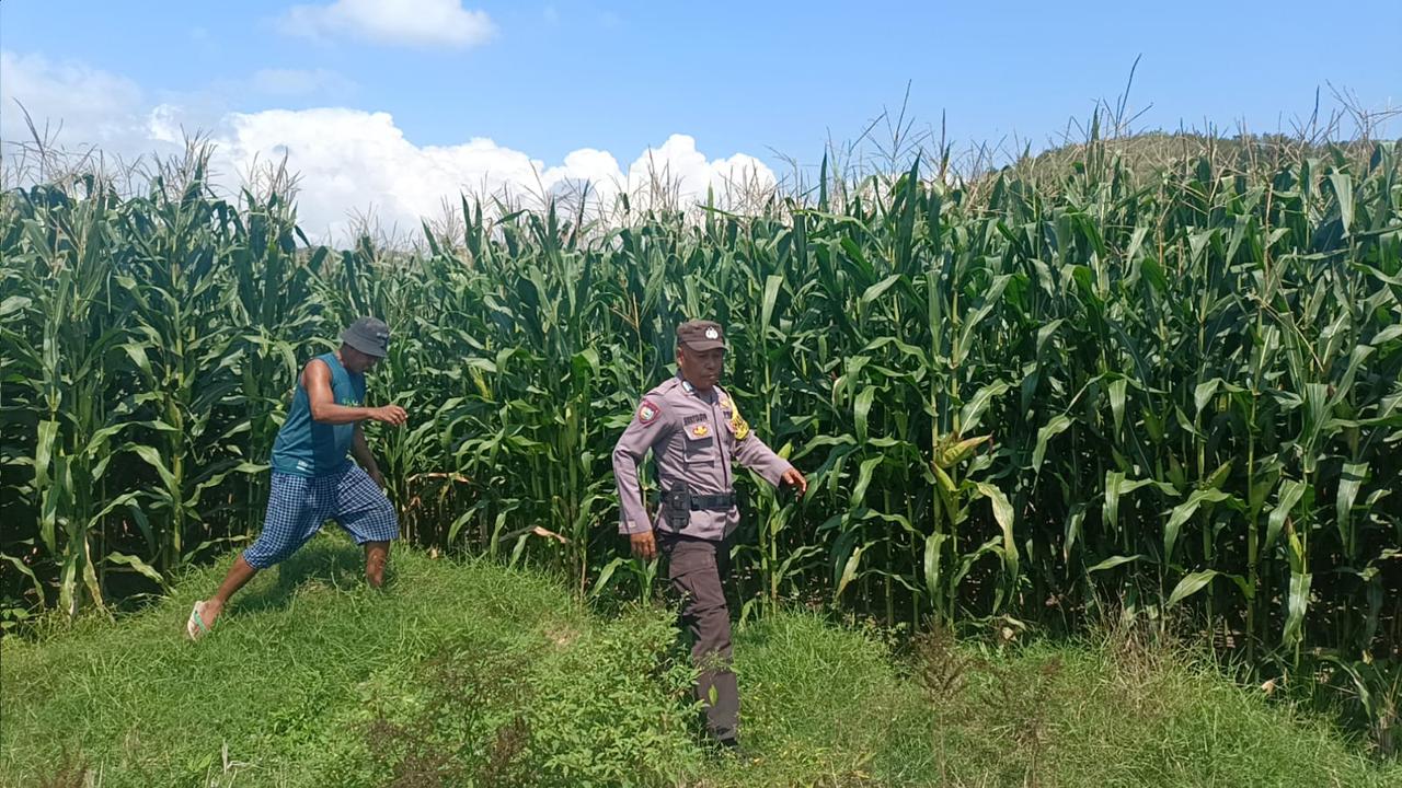 Bhabinkamtibmas Desa Tarusa Tinjau Lahan Jagung Warga, Ajak Masyarakat Dukung Ketahanan Pangan