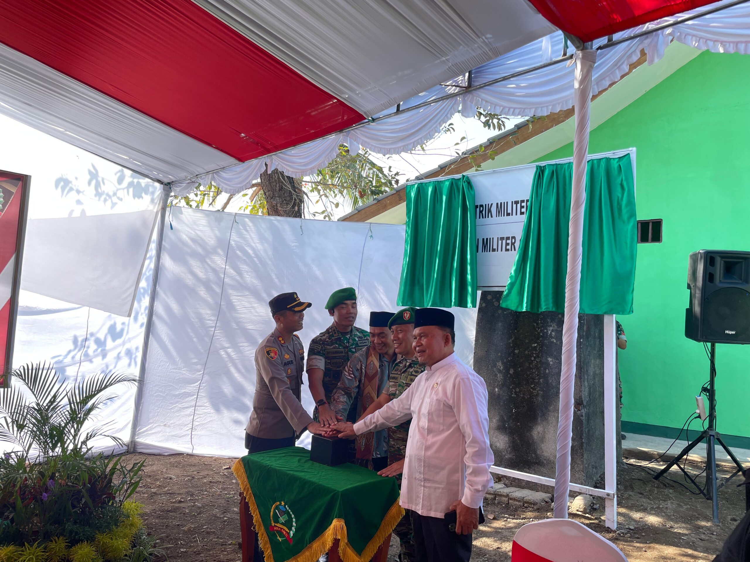 Rangkaian kegiatan peresmian dilanjutkan dengan pemencetan sirine, pemotongan pita secara simbolis, penandatanganan prasasti oleh perwakilan Kodam IX/Udayana dan Forkopimda KLU, serta pemberian bantuan sembako kepada 15 orang perwakilan fakir miskin dan anak yatim yang berada di sekitar Koramil.