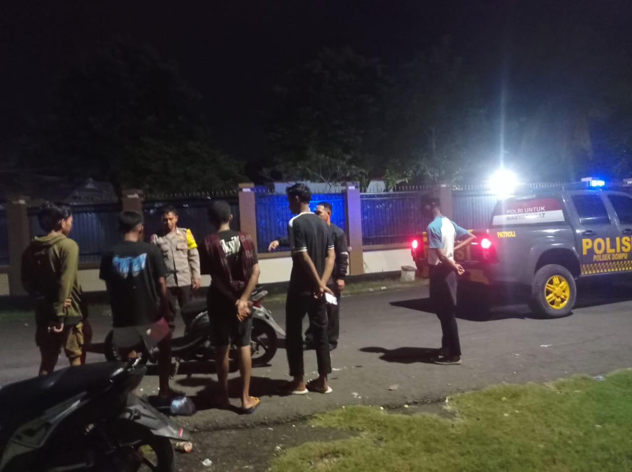 Polsek Dompu melaksanakan Patroli Cipta Kondisi (Cipkon) sebagai bagian dari Kegiatan Rutin yang Ditingkatkan (KRYD) pada Jumat malam, 1 Agustus 2025, mulai pukul 22.00 WITA.