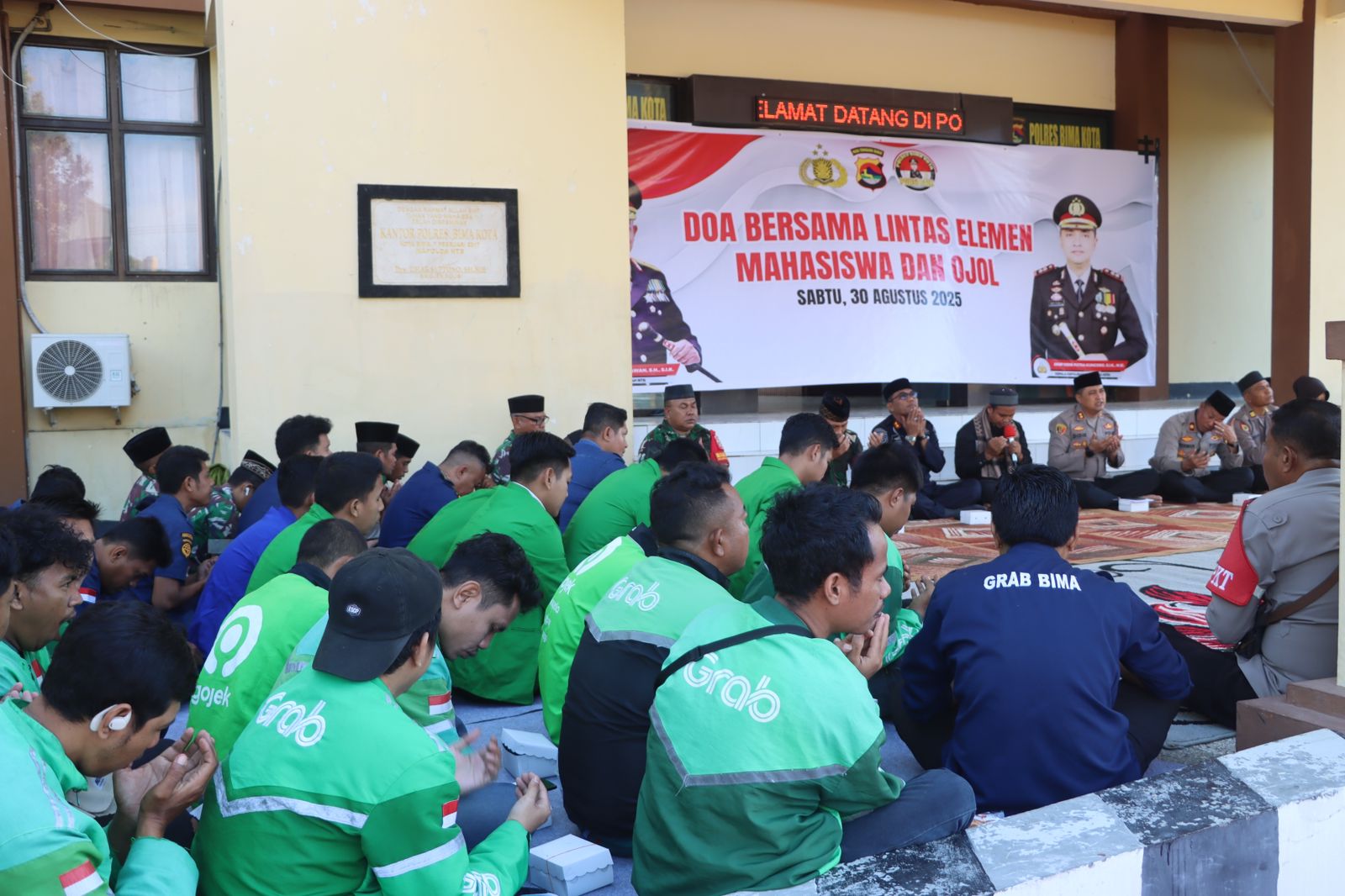 Kota Bima, NTB (30 Agustus 2025) – Polres Bima Kota menggelar doa bersama lintas elemen mahasiswa dan komunitas ojek online (Ojol) di halaman Mako Polres Bima Kota, Sabtu (30/8) pagi sekitar pukul 08.00 WITA. Kegiatan tersebut berlangsung penuh khidmat dan kebersamaan, menghadirkan semangat persatuan untuk menjaga kedamaian dan keamanan di Kota Bima.