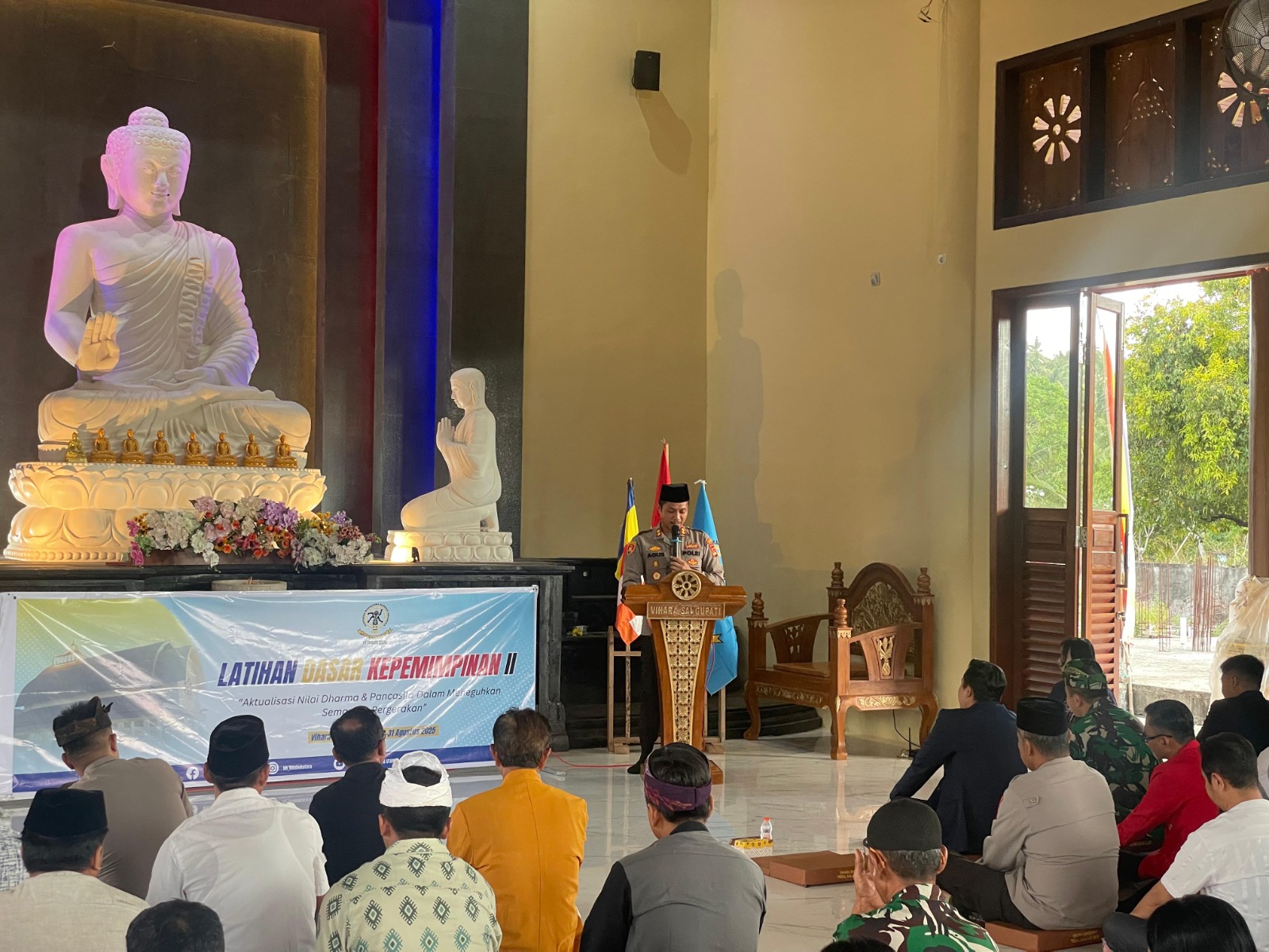Dalam sambutannya, Kapolres Lombok Utara memberikan apresiasi atas terselenggaranya kegiatan kaderisasi kepemimpinan yang melibatkan mahasiswa Buddhis.