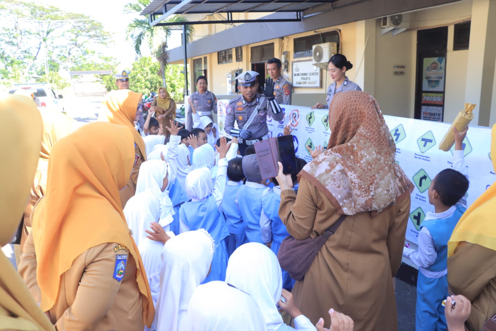 Sumbawa Barat – Dalam rangka menanamkan kesadaran berlalu lintas sejak dini serta memperkenalkan peran dan fungsi Kepolisian kepada generasi penerus bangsa, Satuan Lalu Lintas (Sat Lantas) Polres Sumbawa Barat menggelar kegiatan pengenalan lingkungan Kepolisian kepada anak-anak dari TK Negeri 1 Taliwang, pada Selasa pagi (2/9).