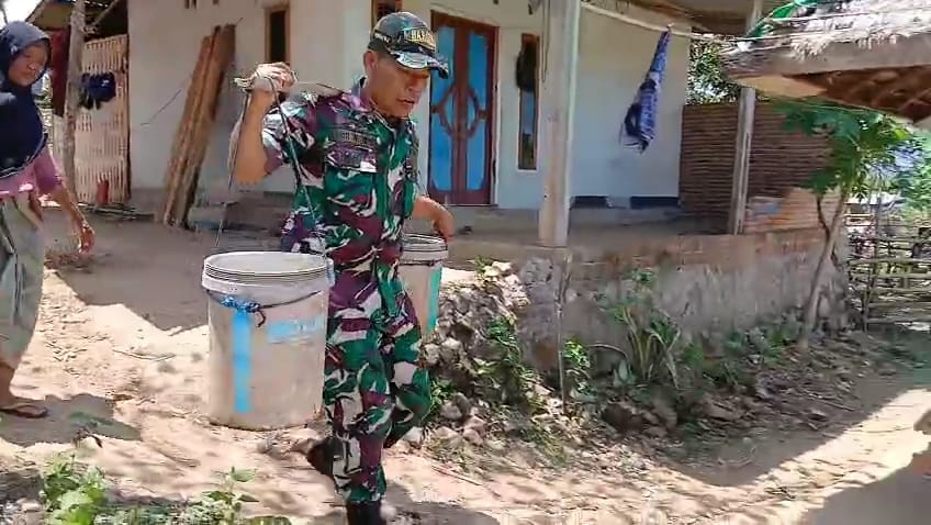 Sementara itu, Papuk Sahmin yang menerima bantuan air bersih mengaku sangat terbantu dengan perhatian Babinsa. “Saya bersyukur ada bantuan dari TNI. Air ini sangat kami butuhkan setiap hari, dan mudah-mudahan pipa cepat terpasang,” ujarnya.