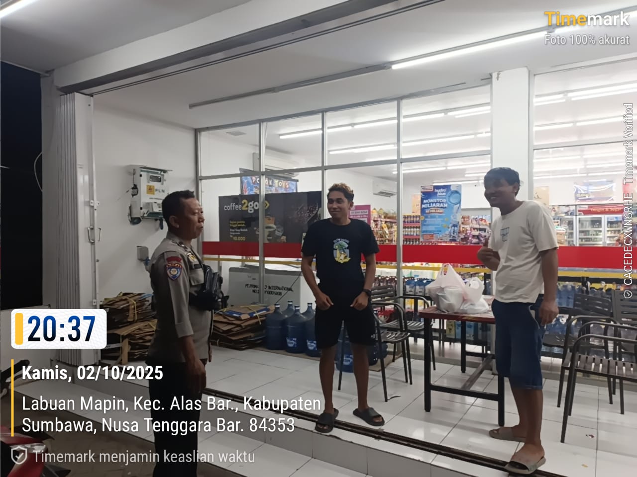 Sumbawa Besar, NTB — Kepolisian Sektor (Polsek) Alas Barat, di bawah jajaran Polres Sumbawa, mengintensifkan upaya pencegahan gangguan keamanan dan ketertiban masyarakat (Kamtibmas) melalui Patroli Blue Light pada Kamis malam, 02 Oktober 2025. Patroli preventif ini digelar untuk menekan angka kriminalitas dan memastikan situasi wilayah tetap kondusif, khususnya di titik-titik yang teridentifikasi rawan tindak kejahatan. Kegiatan ini secara spesifik menyasar lokasi rawan kejahatan, dengan fokus utama pada pencegahan 3C (Curat, Curas, dan Curanmor) serta aksi premanisme.