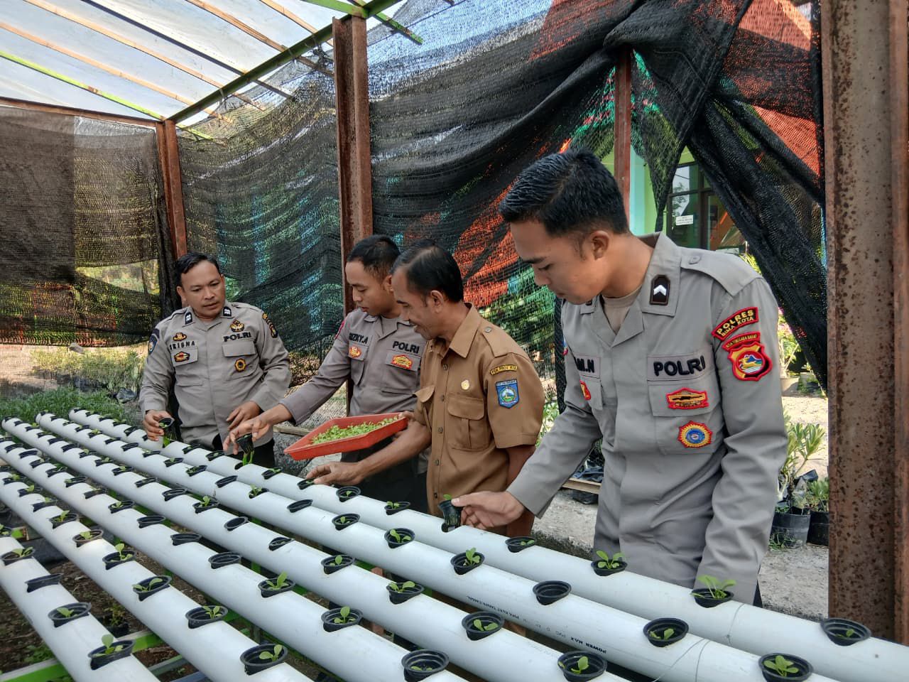 Selain melakukan pengecekan langsung terhadap lahan pertanian, personel Sat Binmas juga berdialog dengan para guru dan siswa mengenai sistem pembelajaran, pengelolaan lahan, serta pengembangan pertanian berkelanjutan di lingkungan sekolah.