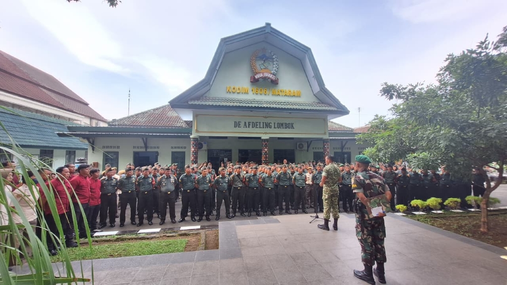 Mataram, NTB – Suasana pagi di Lapangan Apel Markas Komando Distrik Militer (Kodim) 1606/Mataram, terasa khidmat dan penuh semangat. Seluruh prajurit dan PNS Kodim 1606/Mataram berkumpul dalam kegiatan Jam Komandan (Jamdan) yang dipimpin langsung oleh Komandan Kodim (Dandim) 1606/Mataram. Kegiatan ini menjadi momentum penting dalam memperkuat ikatan komando sekaligus menyampaikan arahan strategis kepada seluruh anggota, Senin (27/10/2025).