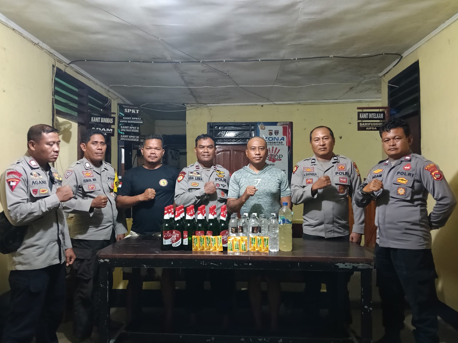 1. NH (53), IRT, Dusun Samakai, Desa Jala di temukan barang bukti berupa 1 botol arak, 1 botol brem, 11 sachet obat batuk Komix (diduga untuk disalahgunakan)