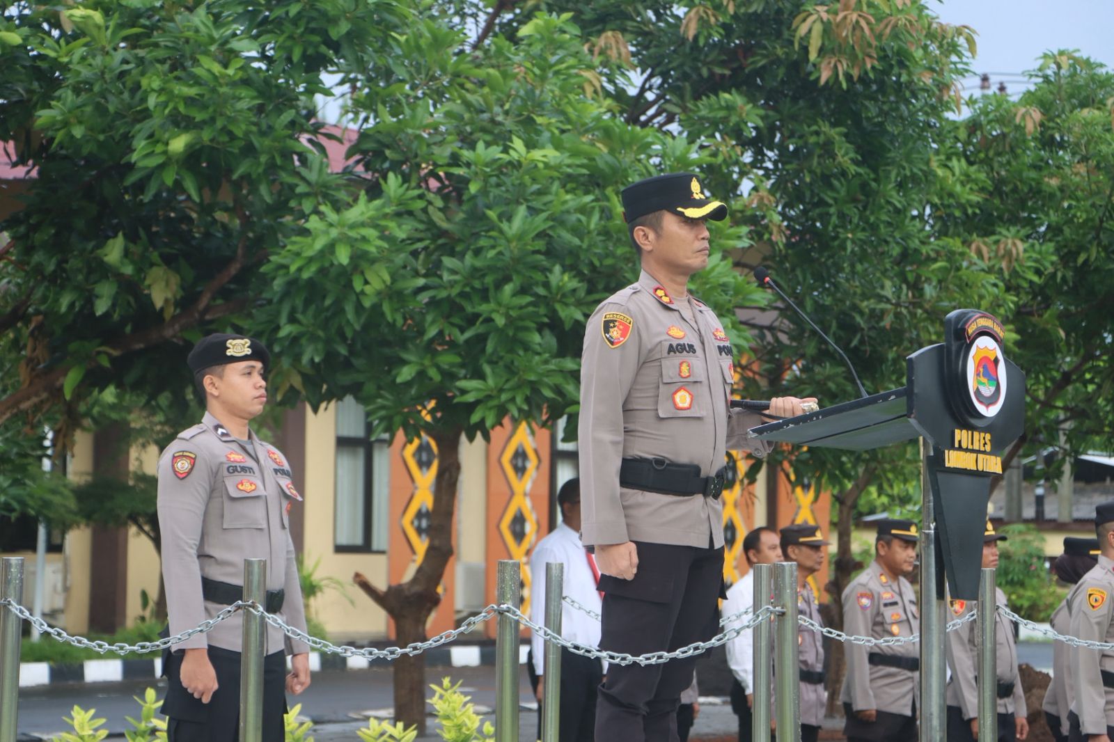 Upacara dipimpin langsung oleh Kapolres Lombok Utara AKBP Agus Purwanta, S.I.K. selaku Inspektur Upacara, dan diikuti oleh Wakapolres Lombok Utara Kompol Adhika G.W., S.E., M.Si., para Pejabat Utama (PJU), Kapolsek jajaran, serta seluruh personel Polres Lombok Utara.
