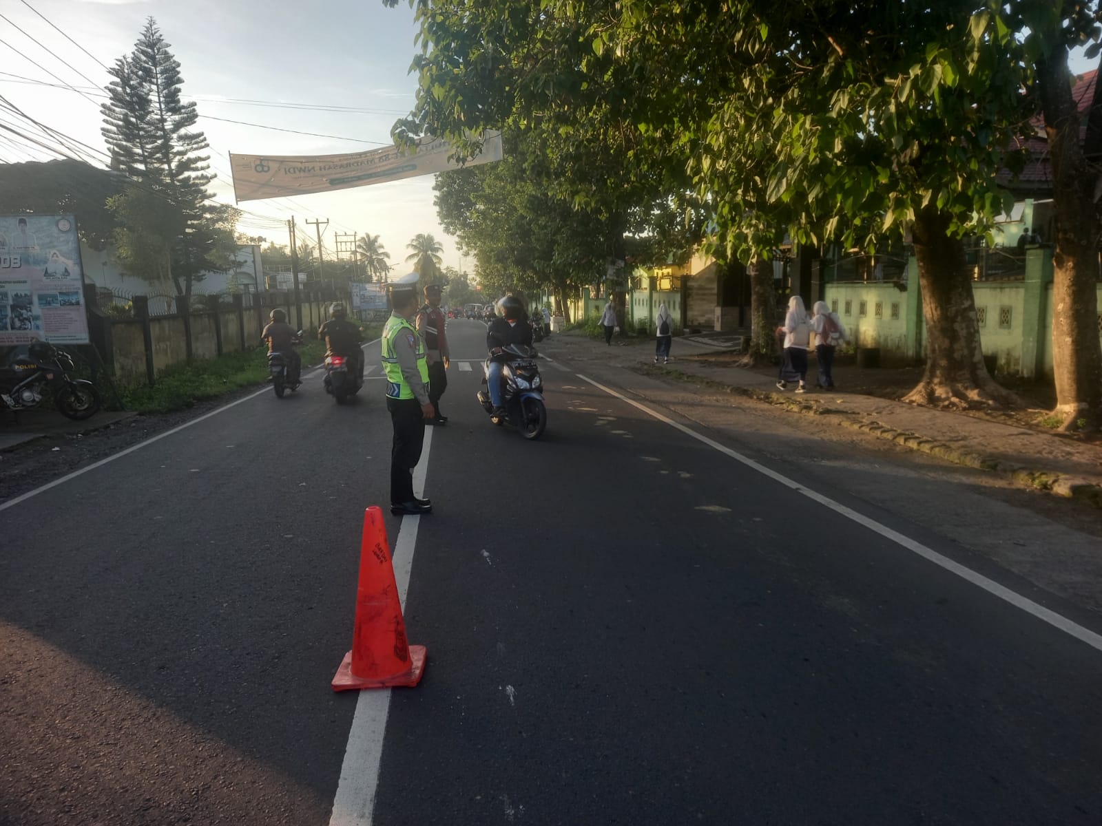 Salah satu upaya yang dilakukan adalah memberikan himbauan kepada pengendara yang melintas agar mengurangi kecepatan kendaraan. Hal ini bertujuan untuk mencegah terjadinya kecelakaan, terutama di lingkungan sekolah yang menjadi titik rawan.